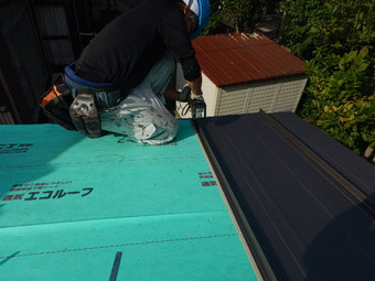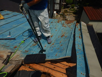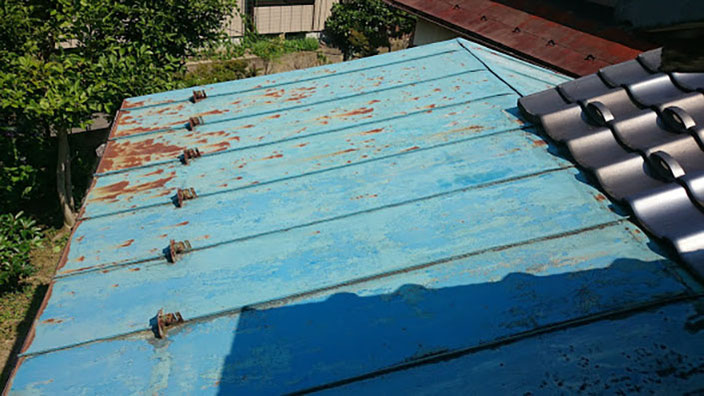 お客様より「雨漏りで困っている」とお電話頂き、屋根の調査に伺いました。現地を確認してみますと板金屋根がサビて穴が進行しているのと端部の雨仕舞が不十分な事が確認され、これが原因であろうと判断致しました。当店から「屋根の経年劣化が進行しているので張替えした方が良い」とご提案させて頂き、ご了承の上で屋根の張り替え工事を行わせて頂きました。今回の施工により雨漏りを経穴する事ができ、雨漏り原因を完全に解消する事ができました。お施主様からは「お願いして良かった。安心した。」とご満足頂く事ができました。
